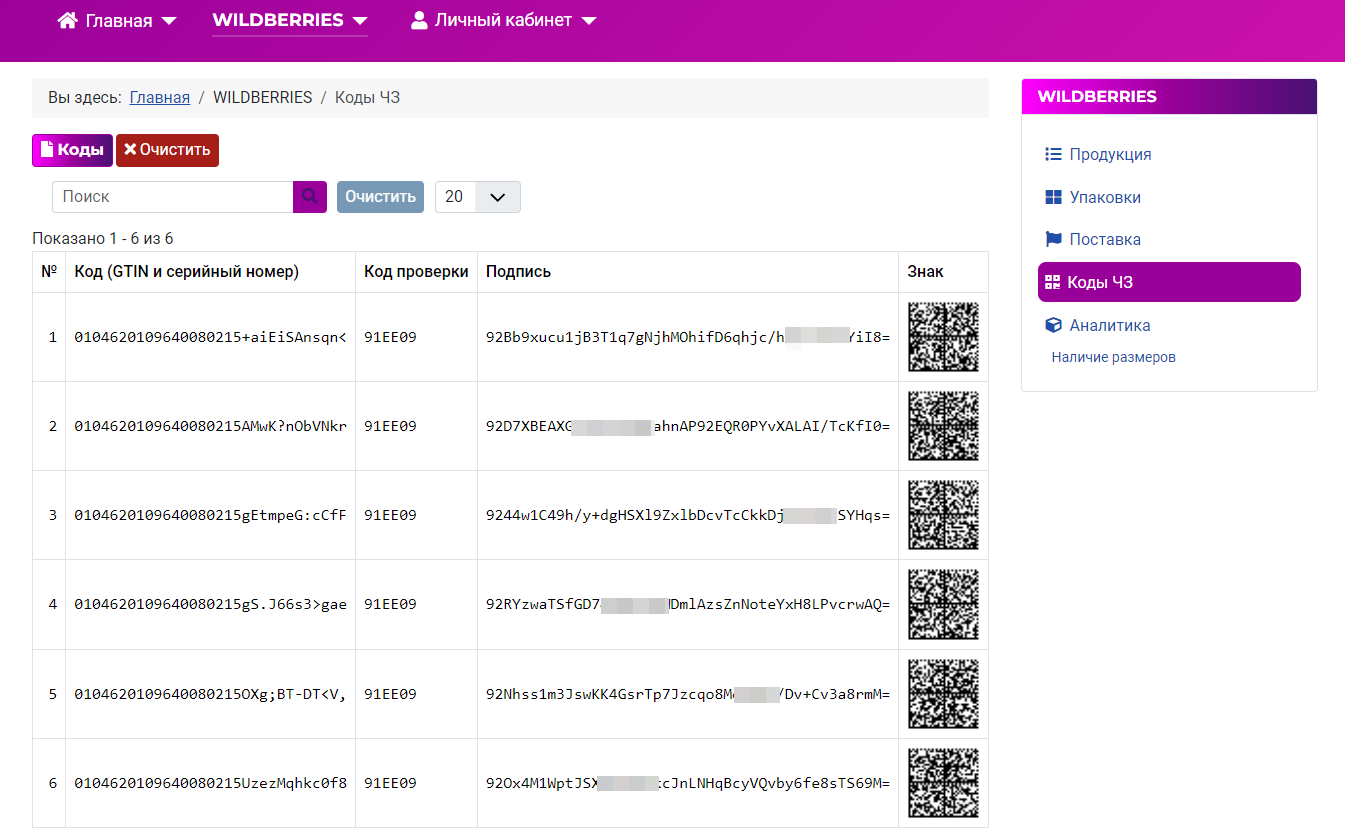 Добавлена поддержка маркировки «Честный знак» для Wildberries.